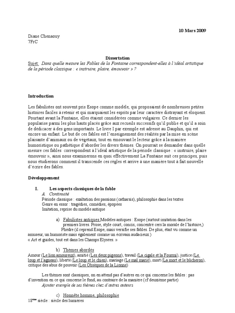 Le classicisme (XVII e siècle) Définition et étymologie. Le terme «classicisme» provient du latin classicus («de première classe»). Dans son Art poétique français, Thomas Sébillet () emprunta le mot classique «en l’appliquant aux auteurs qu’il recommandait comme modèles» blogger.com mot «classique» désignait donc au XVII e siècle les auteurs que l’on étudiait Le commentaire qui suit (Pensez à aller voir mon résumé et mon analyse des Fables de La Fontaine) porte sur la deuxième moitié de la fable, à partir de «Dans Athène autrefois peuple vain et léger». Le pouvoir des fables, introduction: Avec ses fables, La Fontaine avait pour objectif déclaré d’instruire et plaire son lectorat Le portrait s’ouvre sur une phrase d’introduction au rythme ternaire, qui présente brièvement les deux personnages (Irène et Esculape), campe le décor (Épidaure), et précise le sujet: une consultation.; Le corps de l’anecdote, lui, s’articule en deux parties, mais sur un mode blogger.com première partie aborde les petits maux de la vie quotidienne – la «fatigue», le manque